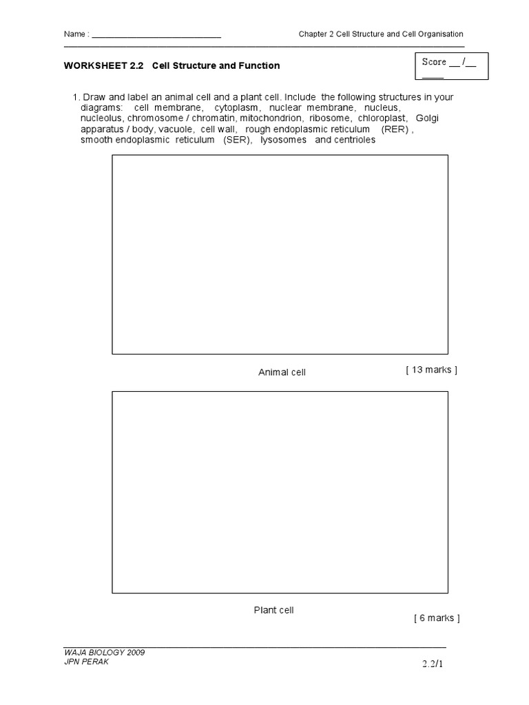 Cell STRUCTURE and Function Worksheet. Homework Doc